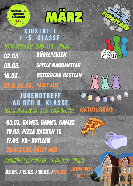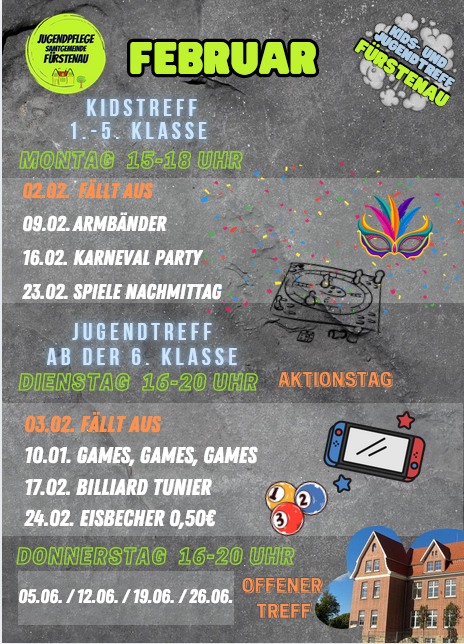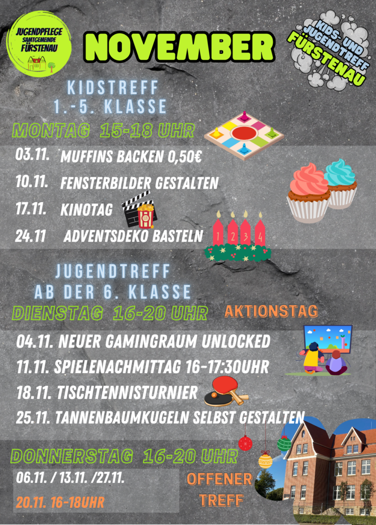 Der Jugendtreff findet dienstags und donnerstags von 16 Uhr bis 20 Uhr statt. Dienstags ist der Aktionstag, an dem wir verschiedene coole Dinge wie Koch- oder Gamingangebote für euch vorbereiten.
